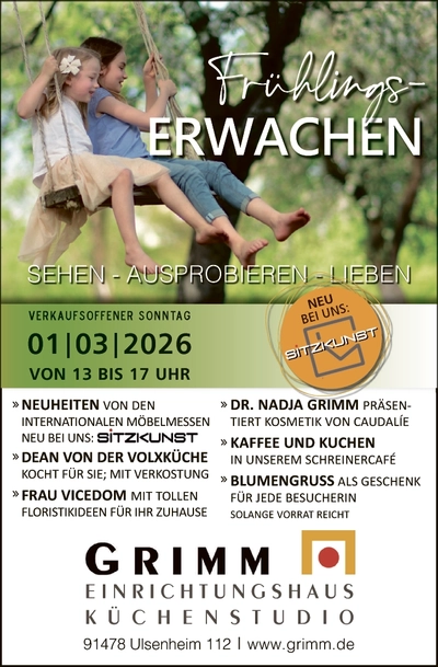 Das Frühlingserwachen in Markt Nordheim findet heuer schon am Sonntag, 1. März, statt. Es handelt sich traditionell um einen verkaufsoffenen Sonntag, der den Frühling einläutet. Besucher können sich auf geöffnete Geschäfte und kulinarische Angebote freuen. Ein weiterer Frühjahrsmarkt ist für den 19. April terminiert.