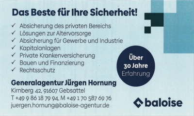 Unser Schloss, das sich in Privatbesitz befindet, prägt das Ortsbild und erinnert an die lange Geschichte unseres Ortes. Auch unsere beiden Kirchen – die evangelische und die katholische Kirche – gehören zu den prägenden Bestandteilen unseres Dorflebens und sind wichtige Orte der Begegnung. Nicht zuletzt tragen auch unsere örtlichen Gastwirtschaften dazu bei, dass Gebsattel ein Ort bleibt, an dem Gemeinschaft gelebt wird. Stammtische, Feste und persönliche Begegnungen halten unsere dörflichen Traditionen lebendig und stärken den Zusammenhalt in unserer Gemeinde.