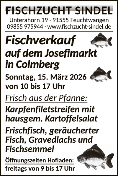 Am Festplatz in Colmberg erwartet Sie am Sonntag, 15. März 2026, ein vielseitiges und spannendes Event, das keine Wü̧nsche offenlässt. Gemeinsam mit der Frü̧hjahrsausstellung der Firma Chorbacher lädt der Josefi-Markt des Förderkreises Markt Colmberg zum Bummeln, Entdecken und Genießen ein.