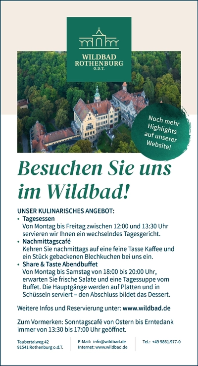 2026 stehen allerdings nicht nur die beeindruckenden Bauwerke im Fokus der Stadt, sondern vielmehr die Natur und die Landschaft des lieblichen Taubertals rund um Rothenburg. So lautet das Motto des Themenjahrs 2026 „Rothenburg – Stadt.Landschaft.Natur“, gezeigt wird, wie eng Kultur, Natur und Lebensraum miteinander verknüpft sind. So ist Rothenburg nicht nur als mittelalterliche Stadt mit weltberühmter Silhouette zu verstehen, sondern vielmehr als gewachsenes Gesamtkunstwerk aus Kultur, Geschichte und Natur.