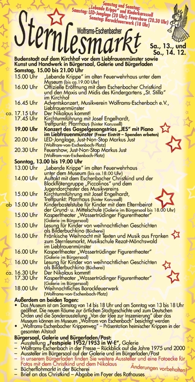 traditionell findet am 3. Wochenende im Advent, am Samstag, 13., und Sonntag, 14.12., der Wolframs-Eschenbacher Sternlesmarkt statt.