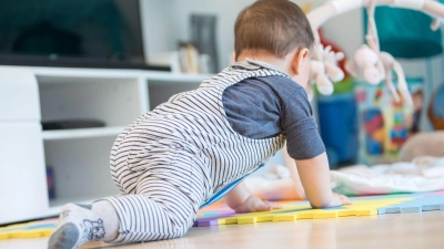 Krabbelkinder stecken sich gern alles in den Mund - und kommen beim Spielen auf dem Boden schnell mit Staub in Berührung. Warum das ungesund sein kann - und was Eltern tun können.