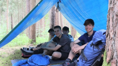 15 Schülerinnen und Schüler testen im Wald bei Großohrenbronn das Leben in der Natur als Training für eine Fünf-Tages-Tour im Juli.