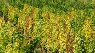 Erbsengroße Trauben, gelbe Blätter - Trockenheit im Weinberg